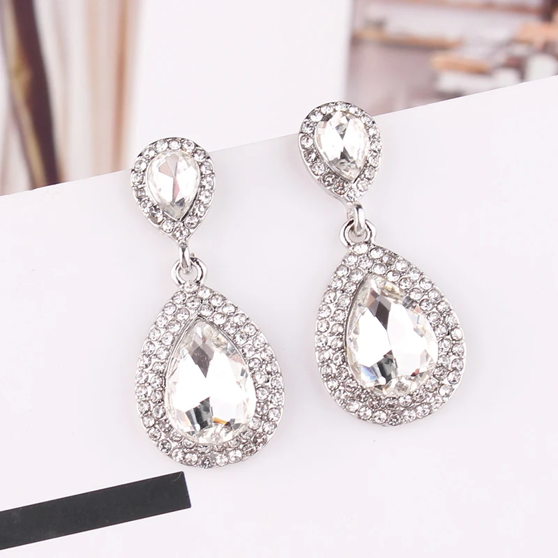 - Brincos Femininos de Luxo Gota de Água com Pedra de Cristal