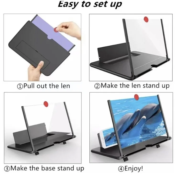 Amplificador De Tela Do Telefone 10 Polegada 3d Projeto Dobrável Hd Lupa De Vídeo 3d Filmes Relógio Smartphone Stand