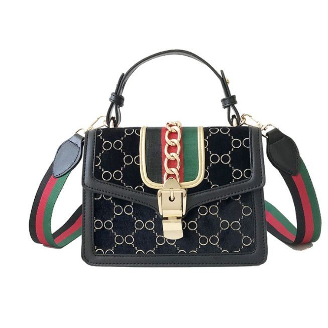 Bolsa portátil com bordados de veludo, Bolsa transversal selvagem com bordados de veludo Descubra a elegância distintiva da moda coreana com nossa bolsa transversal com alça larga