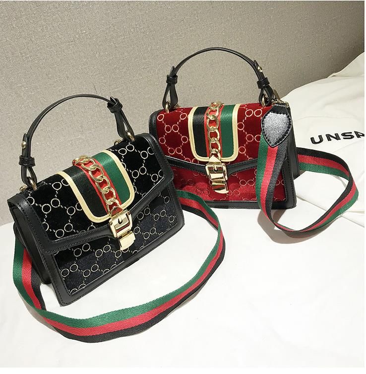 Bolsa transversal com alça larga, bolsa de veludo, Bolsa transversal coreana,