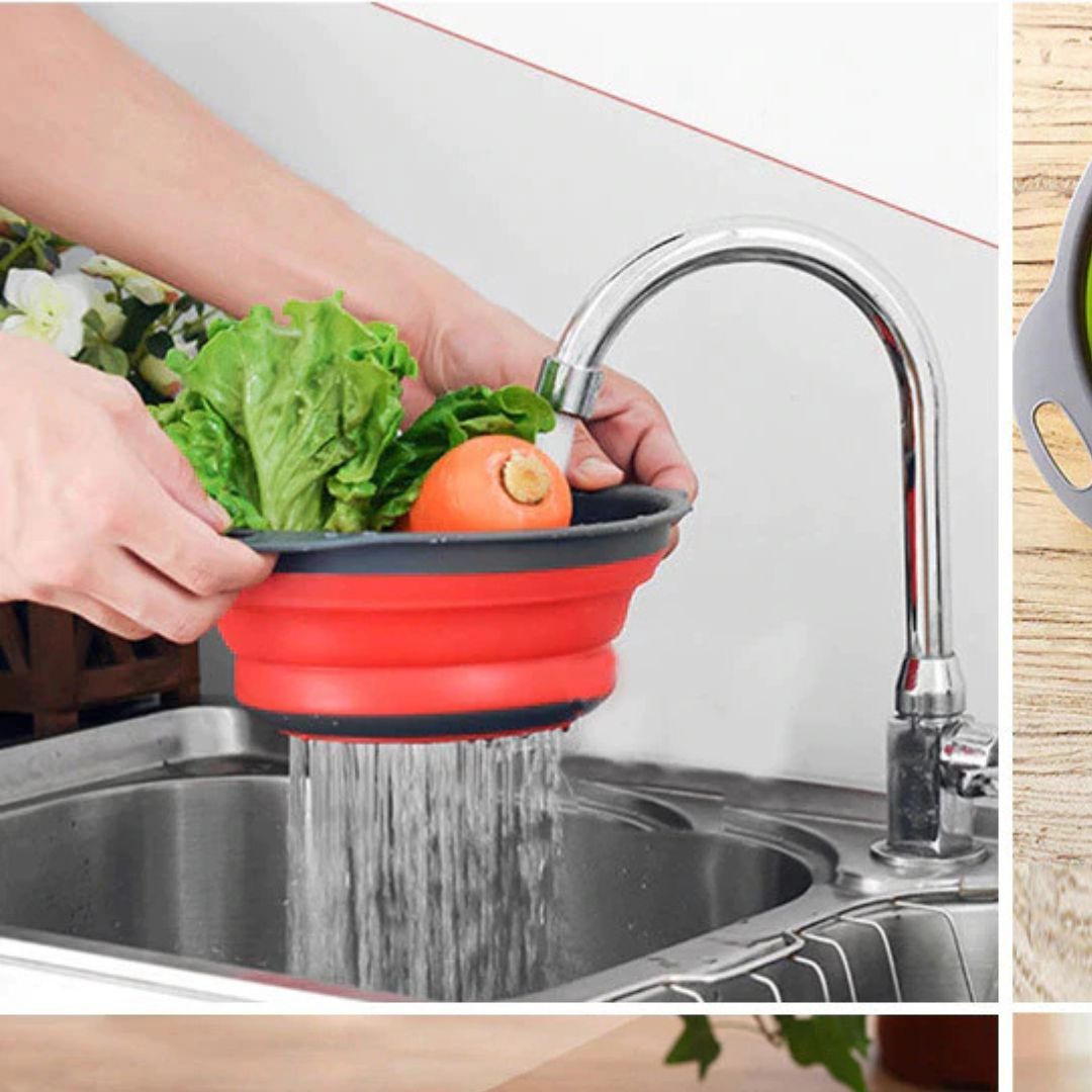 Escorredor De Silicone Dobrável Retrátil Para Legumes, Verduras e Macarrão