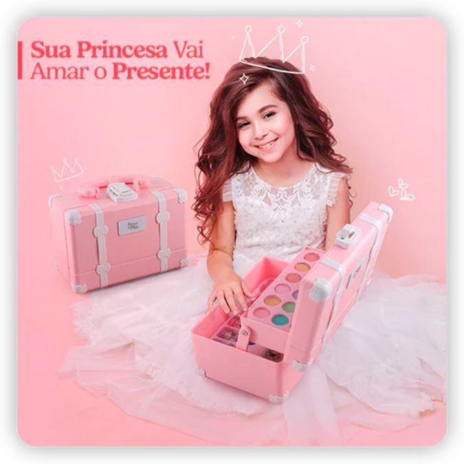 - Deixe as crianças expressarem sua criatividade e experimentarem com maquiagem de forma segura. A maleta é um excelente meio para desenvolver habilidades artísticas desde cedo.