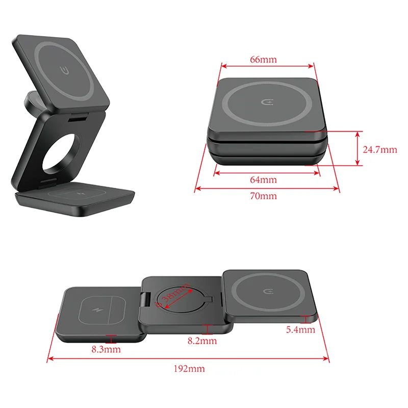 - Design 3 em 1: Carregue simultaneamente seu smartphone, smartwatch e fones de ouvido em um único suporte magnético.