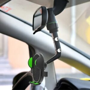 Este acessório foi projetado para transformar a maneira como você interage com seus dispositivos no carro. Ele amplia a visão do retrovisor e oferece uma posição estável e prática para seu smartphone ou GPS, sem atrapalhar a direção.